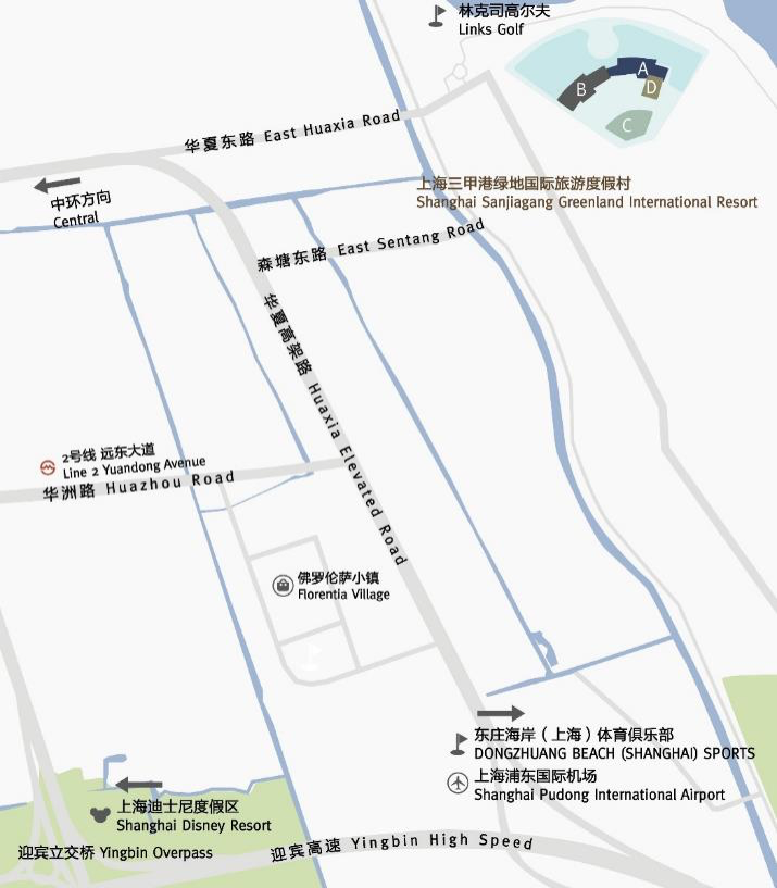 Located at Huaxia Coastal Zone, the hotel borders the East China Sea; adjacent to Shanghai International Tourism Resort, Florentia Village outlet, Links Golf, Shanghai Jinqiao Export Processing South Zone, and it takes only 10mins’ drive to Shanghai Pudong International Airport.